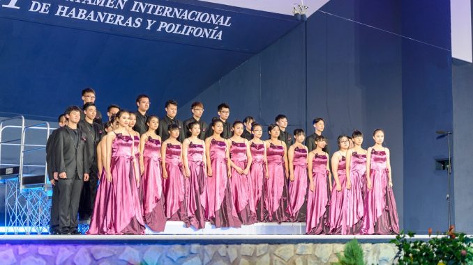 La última actuación de la noche ha venido de parte del tercer coro participante, Beijing Agriculture University Youth Choir, una formación juvenil que ya participó en 2013, y que ganó el segundo Premio en Polifonía y el Premio a la Mejor Interpretación de una Obra Polifónica de la Región de Origen. El coro ha interpretado dos habaneras agradables para los espectadores, como son ‘El Ausente’, con letra de Carmen Ortiz y música de Jorge López, y ‘Marinero’, de Miguel Asíns Arbo. La formación ha demostrado en su actuación la realización de un trabajo previo minucioso, que se destaca por la meticulosidad en los matices y detalles de la interpretación, así como por la complejidad de la polifonía seleccionada. Las obras polifónicas cantadas han sido ‘East Spring’ de Urna Bayar y Qian Xiang Yang, y ‘Ayug ti Amianan’, con arreglo de Fidel G.Calalang Jr.