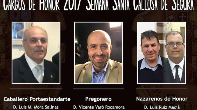 La Junta Central de la Semana Santa de Callosa aprobó por unanimidad en su última Asamblea Ordinaria, celebrada el pasado 26 de enero, los cargos honoríficos para la Semana Santa de 2017.