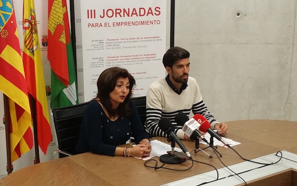La concejal de Empleo, Pilar María Samper junto al técnico de AEDL de Pilar de la Horadada, Angel Martínez han presentado las III Jornadas para el Emprendimiento de Pilar de la Horadada, que se celebrarán desde el 7 al 28 de marzo en la Casa de Cultura.