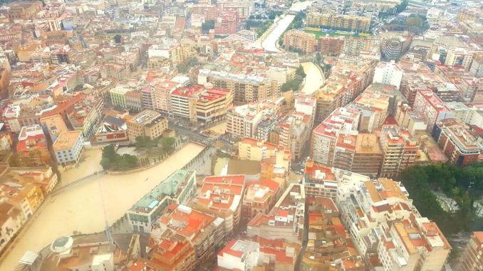 Vista aérea de Orihuela durante las inundaciones / Bomberos