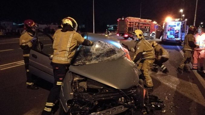 Los bomberos han tenido que excarcelar al hombre que conducía el coche, que ha sufrido una rotura de fémur abierta