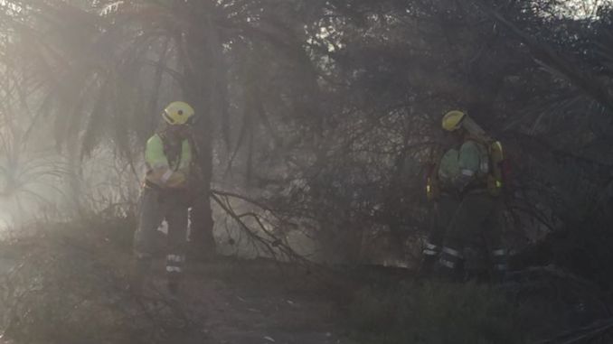 Efectivos de bomberos y las brigadas de Guardamar y Tibi se consiguieron controlar el fuego en torno a las siete de la tarde