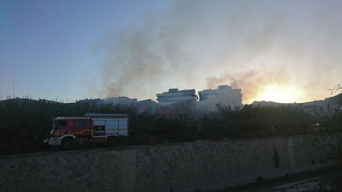 Un incendio calcina cañas y matorrales en un solar junto al Puente del Rey en Orihuela
