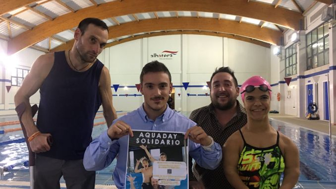 El campeón de España de natación adaptada, Manuel Martínez, junto a los nadadores paralímpicos Marta Expósito e Iván Fernández, y el concejal de Servicios Públicos, Juanjo Fuentes, ha presentado el Aquaday Solidario que organiza la Asociación Hándicaps en colaboración con el Ayuntamiento de Albatera y el Centro Deportivo, y que se realizará este sábado 1 de diciembre de 10:00 a 12:00 de la mañana en las instalaciones de la Piscina Climatizada municipal.