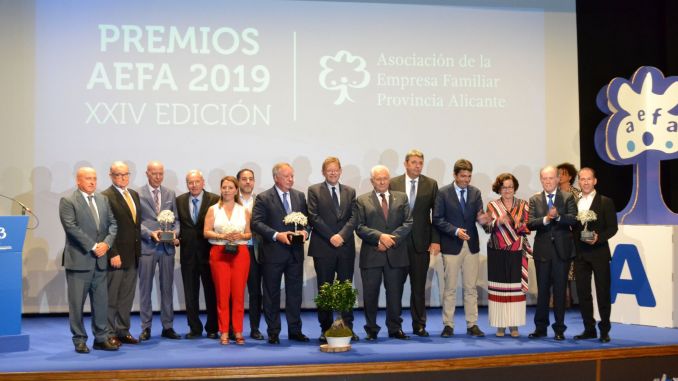 miembros de la Asociación de la Empresa Familiar de la provincia de Alicante (Aefa) para que inviertan en la ciudad y amplíen y mejoren sus negocios aprovechando las posibilidades que ofrece el municipio. El primer edil así lo expuso en el salón de actos de la casa de Cultura que acogió esta mañana el acto de entrega premios anuales de Aefa.