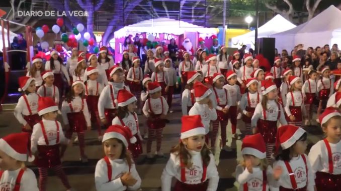 A continuación Papá Noel llegó a la localidad, hizo su entrada por el Teatro Cortés hasta la plaza de la Constitución, en una entrañable cabalgata acompañado por la academia de baile Dance Factory y por una corte de elfos muy singular, los niños y niñas que quisieron formar parte de este gran momento navideño.