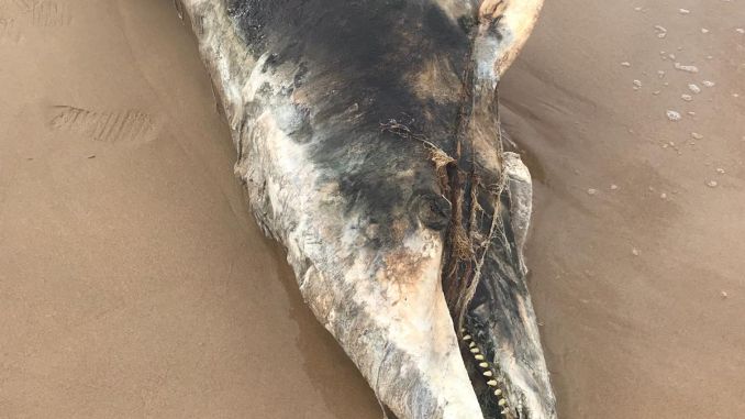 Una ballena muerta apareció el pasado martes 9 de octubre en la playa de El Moncayo en Guardamar del Segura. Fue un grupo personas que andaban por la playa las que se encontraron por sorpresa con el cuerpo sin vida del cetáceo, cuya cola se encontraba enganchada a una red.