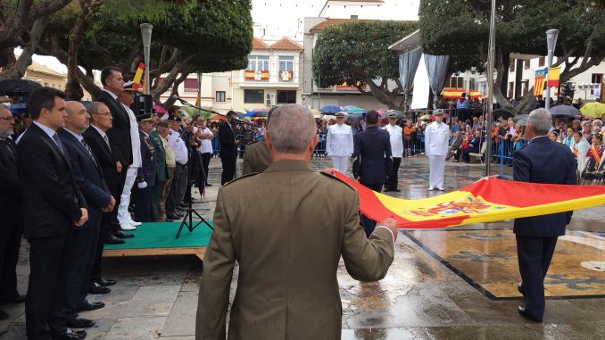 Tras la izada de las banderas, la Senyera Valenciana y la bandera de España, con sus correspondientes himnos y discursos institucionales, se procedió al homenaje a los caídos. Los discursos corrieron a cargo del Comandante Naval de Alicante, Gustavo Adolfo Gutiérrez de Rubalcaba Sánchez-Ferragut , quien ensalzó la devoción española y en especial de Benejúzar por la Virgen del Pilar, y del primer edil, quien puso en sus palabras unas reseñas históricas, destacando el pasado de la Comunidad Valenciana, homenajeando al rey fundador, Jaime I, sin olvidar el momento por el que pasa España “en estos tiempos en los que especialmente en Cataluña surgen discursos independentistas, tenemos que decir muy alto y claro que nosotros creemos en la indisoluble unidad de la Nación Española que garantiza la Constitución en su artículo segundo. Por eso levanto mi voz contra quienes quieren romper la unidad de nuestro país, porque España no puede ser humillada por un nacionalismo traidor y desleal”.