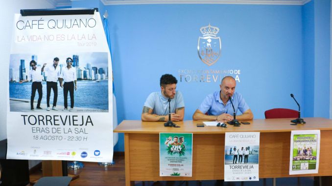El concejal de Cultura del Ayuntamiento de Torrevieja, Antonio Quesada, junto al artista local, Jonathan Pons, ha presentado los eventos musicales que se llevarán a cabo el próximo mes de agosto en las Eras de la Sal, dentro de la Programación Cultural de Verano 2019.