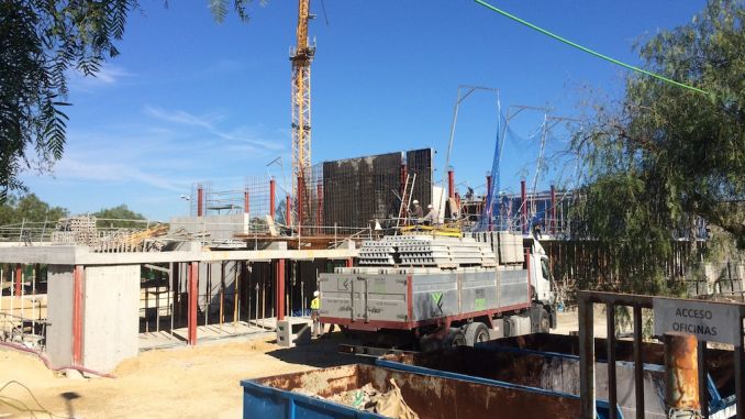 Ahora, la empresa adjudicataria se centrará en la construcción del nuevo edificio principal, del que ya se puede adivinar la estructura, y que acogerá otras seis aulas para alumnos de cuarto, quinto y sexto de primaria, así como el comedor escolar y despachos.