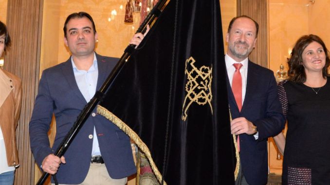 Posteriormente, el recién nombrado Caballero Cubierto ha sostenido por unos instantes la bandera que portará en la procesión del Santo Entierro. Una de las más singulares de toda España porque tiene dos elementos característicos que no posee ninguna otra; la figura del Caballero Cubierto, y la salida en procesión de La Diablesa.