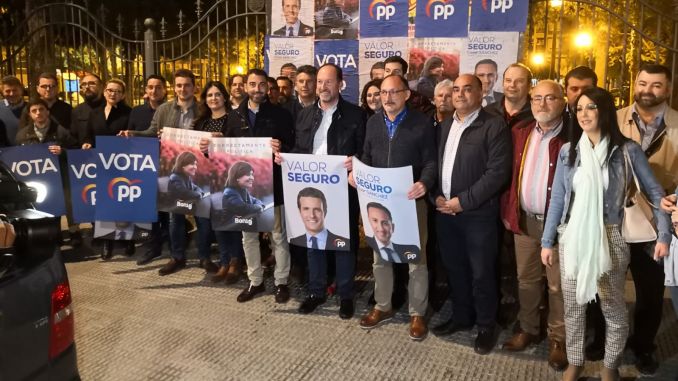 El Partido Popular eligió las inmediaciones del parque Severo Ochoa, donde se han instalado paneles para la colocación de carteles electorales, para realizar la tradicional pegada. Concejales, afiliados y simpatizantes del PP participaron en el acto, con el presidente Dámaso Aparicio y el alcalde Emilio Bascuñana a la cabeza.