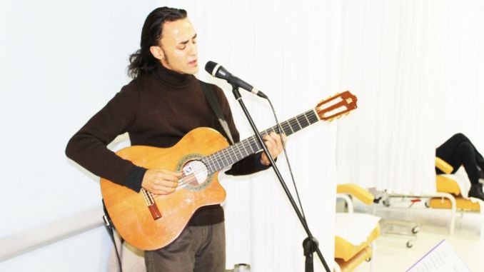 Los pacientes en tratamiento de Hospital de Día del Hospital Universitario de Torrevieja han podido aliviar hoy su estancia con microconciertos de 20 minutos a cargo de un músico profesional. La iniciativa, impulsada por la Asociación Músicos por la salud pretende humanizar la estancia de los enfermos y el personal sanitario. Durante el microconcierto, los pacientes han podido conversar con el cantante y guitarrista Tony Sáez y escuchan de cerca las interpretaciones.