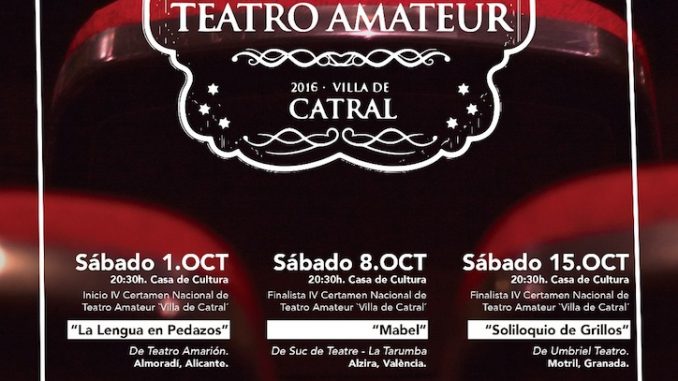 El teatro del centro cultural de Catral acogerá durante los cinco sábados del mes de octubre la cuarta edición del Certamen Nacional de Teatro Amateur de la localidad, edición en la que han solicitado participar un total de sesenta y ocho producción teatrales amateurs, de las que la organización ha seleccionado cuatro finalistas y dos reservas.
