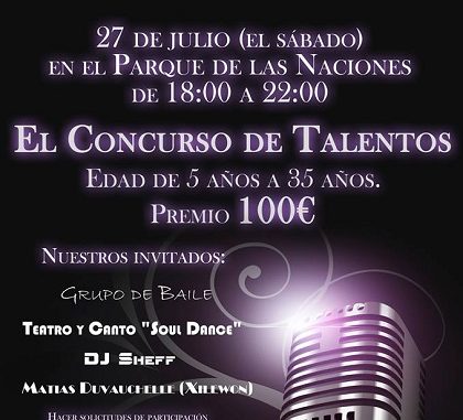 El próximo 27 de julio, en el Jardín de las Naciones, niños y jóvenes de entre 5 y 35 años podrán demostrar sus habilidades como cantantes, bailarines, músicos, etcétera y concursar por ser los ganadores de una Tablet, cheques regalo o un cheque valorado en 100 euros, entre otros.